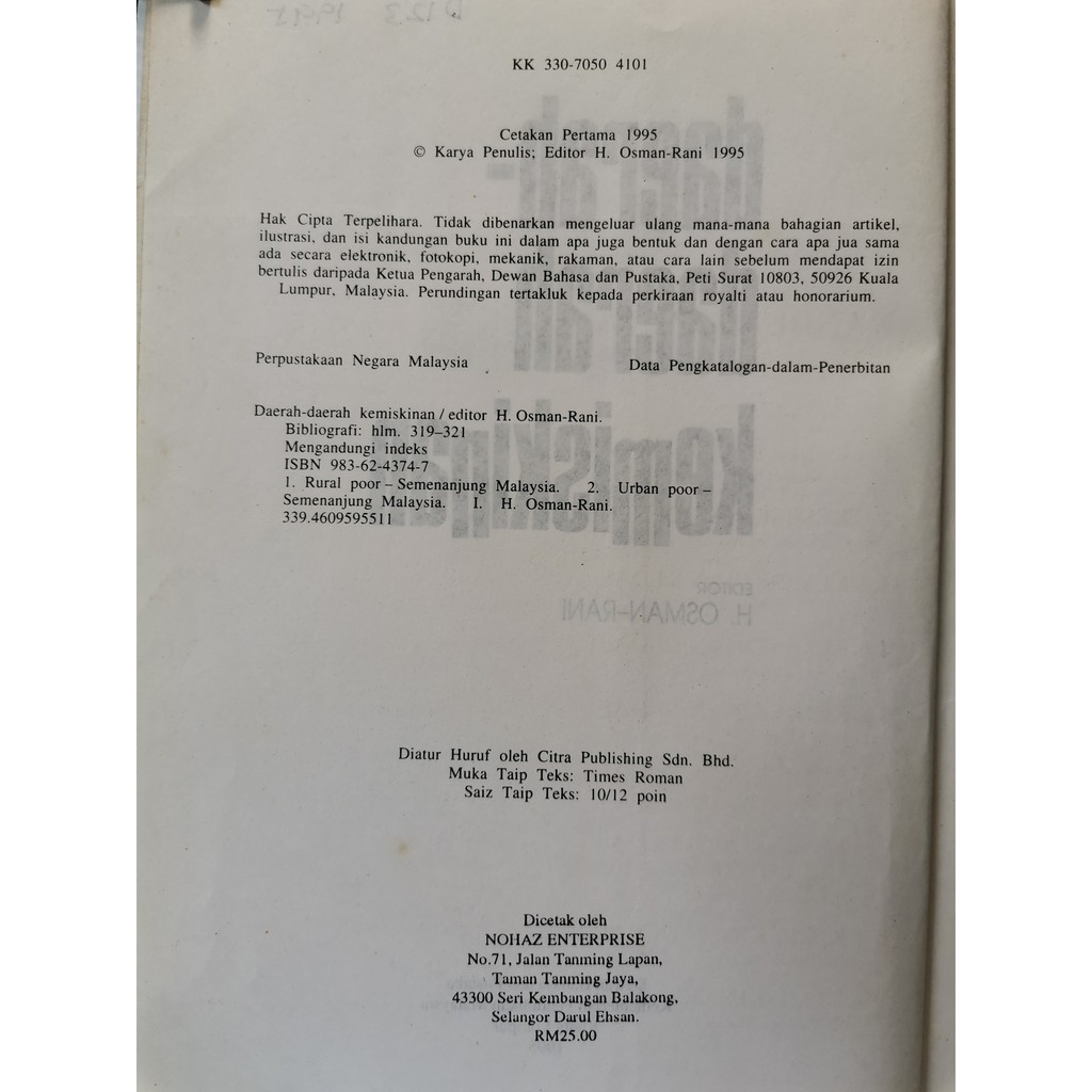 Daerah Daerah Kemiskinan H Osman Rani Ed Ekonomi Buku Terpakai Preloved R2 Shopee Malaysia