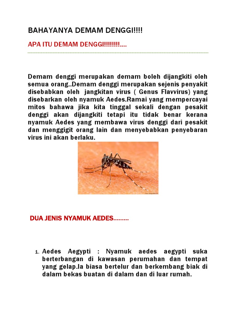 Apa itu Demam Denggi. Check more flip ebooks related to Apa Itu Demam Denggi. Ia boleh diikuti dengan pendarahan seluruh badan yang juga membawa maut.